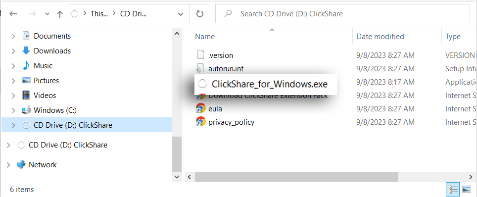 In the drive, double-click the file ClickShare_for_Windows.exe.
