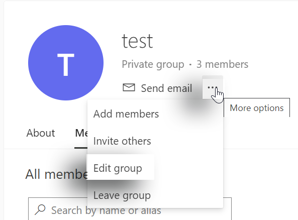Select the ellipsis and then select Edit group.