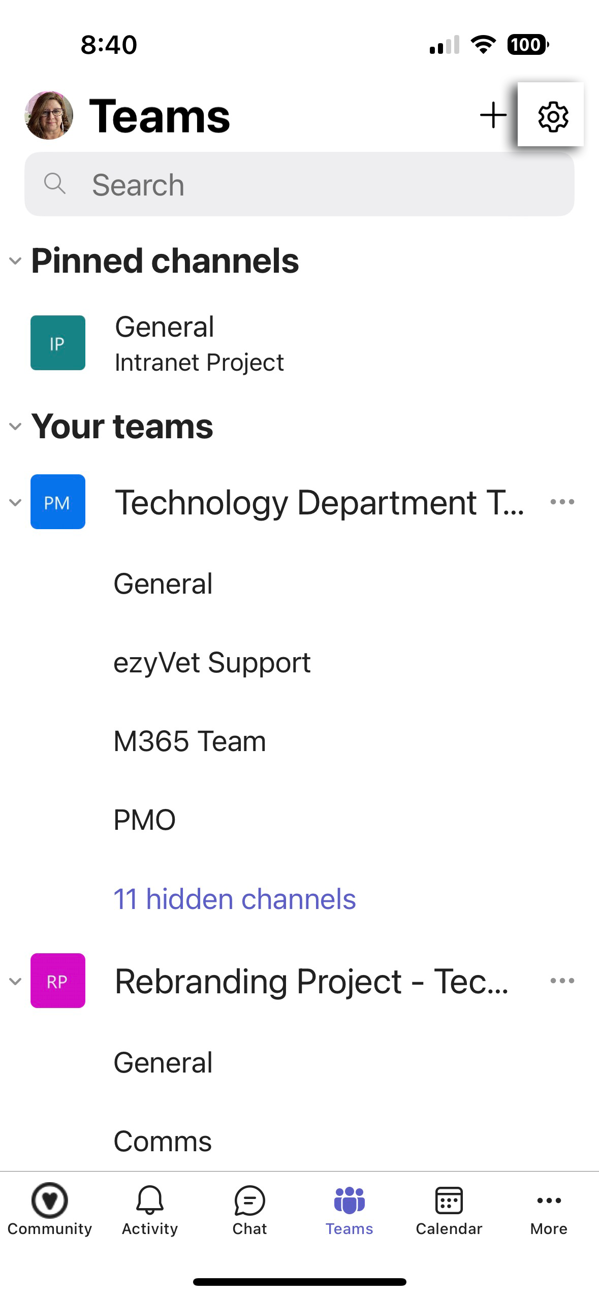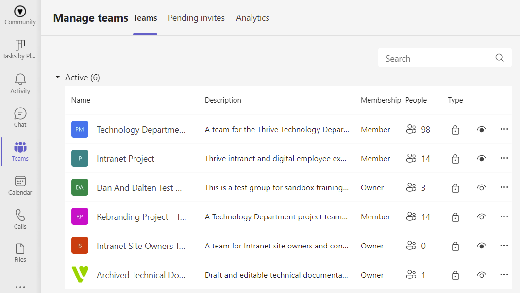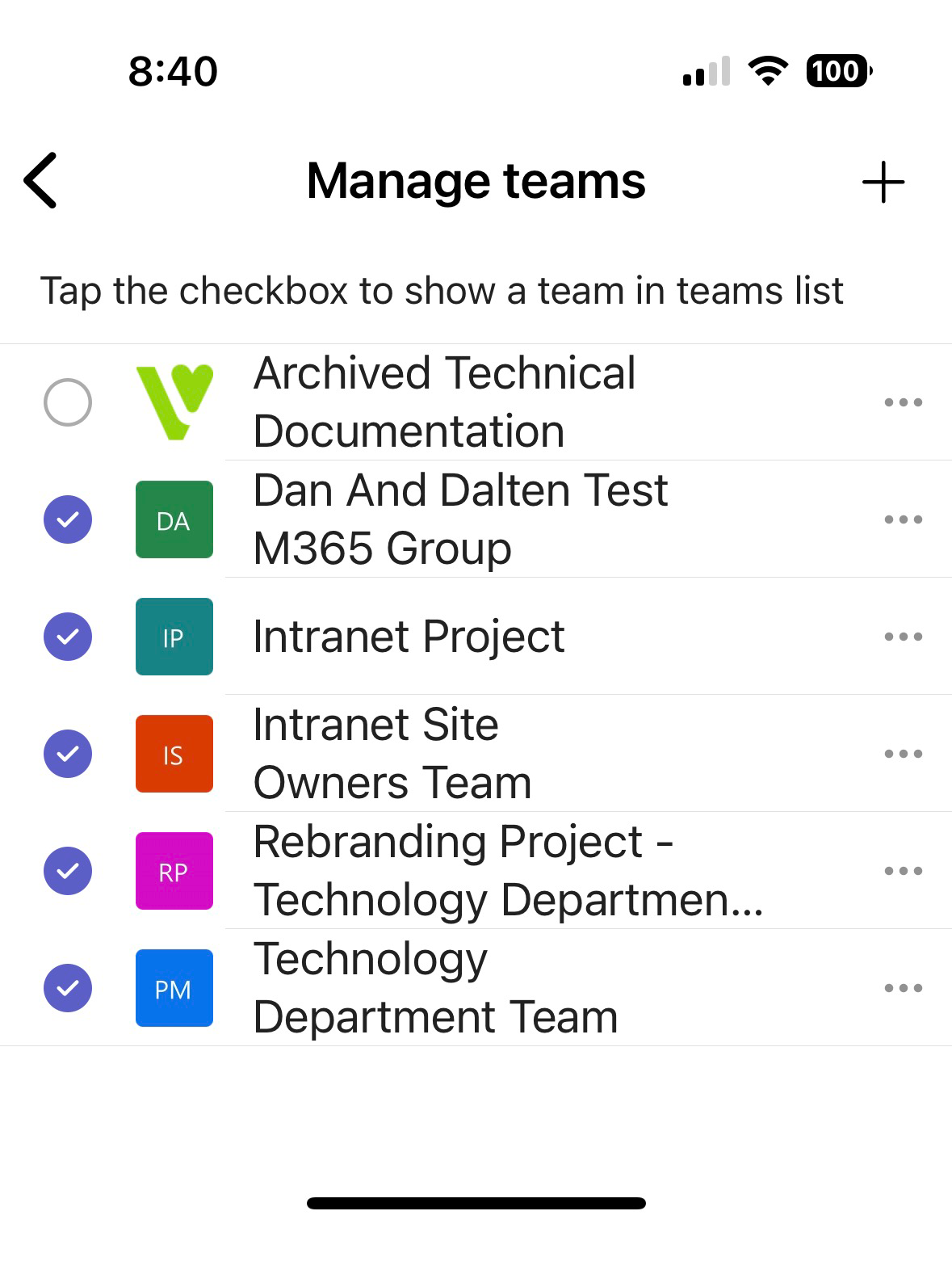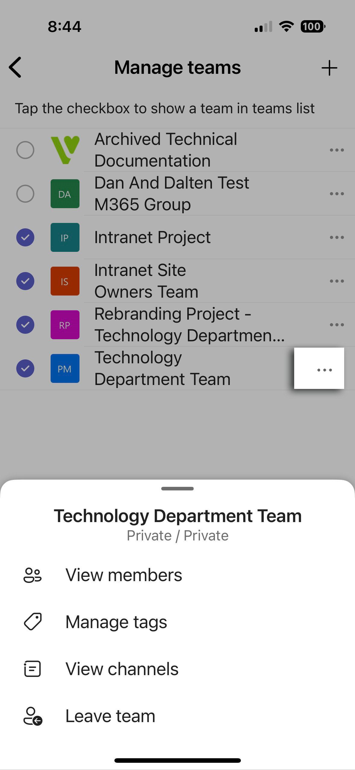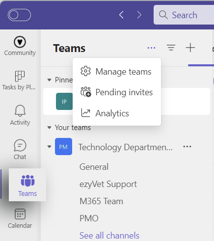 Click the Ellipses (three dots) to the right of the Team to view Team Channels and manage the Team.