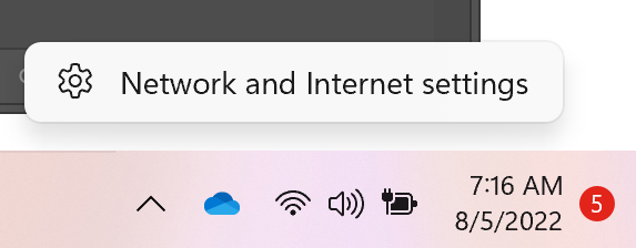 Right-click the Network Icon and select Open Network & Internet Settings.