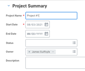 8. Select Submit to complete the creation of the Project. Once fully approved, any Project Resource can book time against the Project.