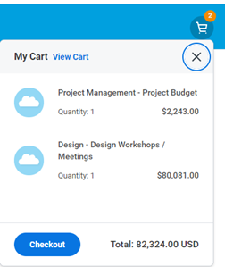 15. Once all items are added to the cart, select the Cart icon, then Checkout.