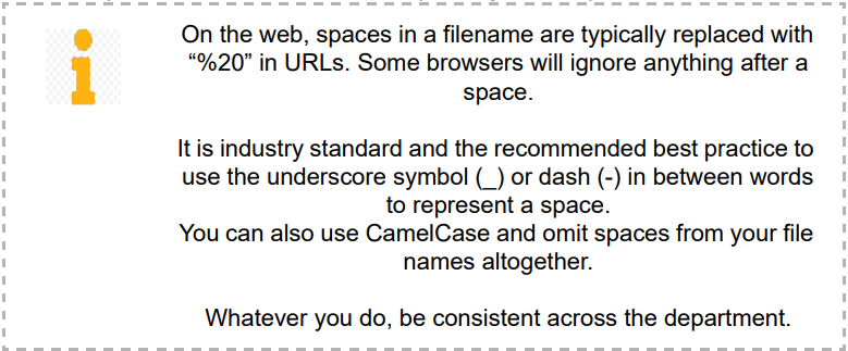 between words.Use short but descriptive, meaningful file names (<25 characters)1. Ensure that each name
