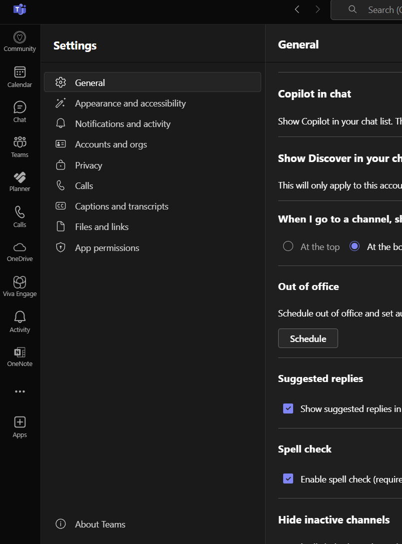 Check your Teams version by selecting the ellipsis next to the profile picture in the upper right corner. In the lower-left corner, select About Teams to see the current version installed.