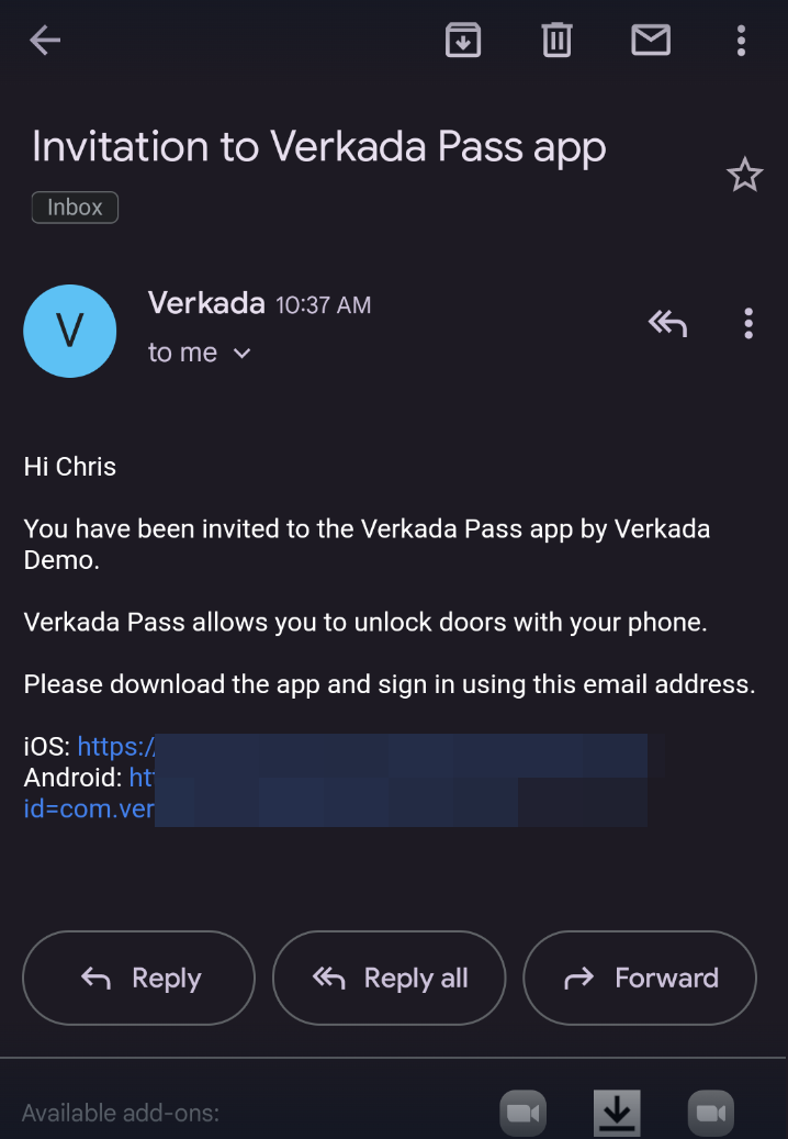 Download the Verkada Pass app to your mobile phone using the invite link received in your inbox.