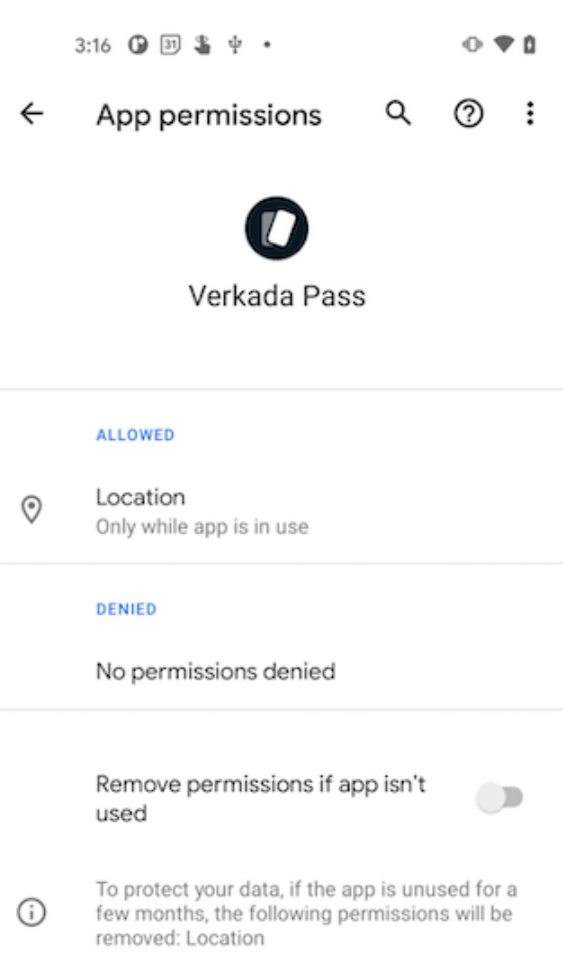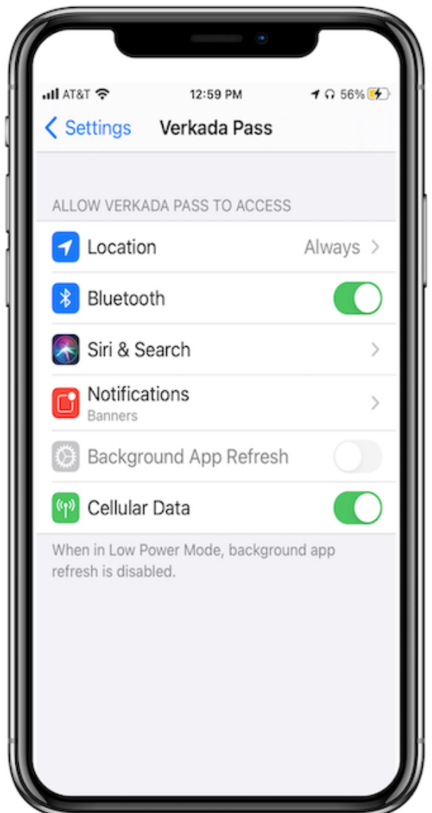 Verkada Pass app notification should be in the notification center (this allows Verkada Pass Bluetooth to work when the app is closed).